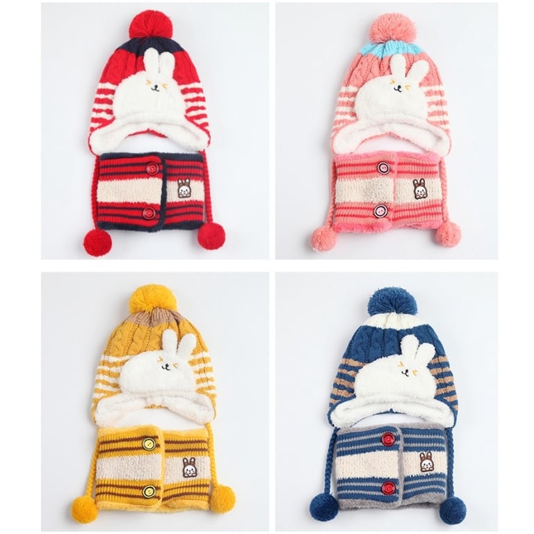 Set invernale per bambini con cappello e scaldacollo a forma di coniglio