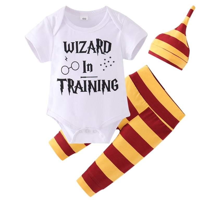 Etichette: set per bambini, set per neonati, set neonatale, Harry Potter, mago, body per bambini, body a manica corta, body a manica lunga, body, pantaloni, cappellino, fascia per capelli, bambini, abbigliamento per bambini