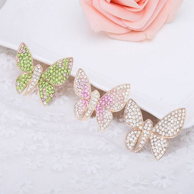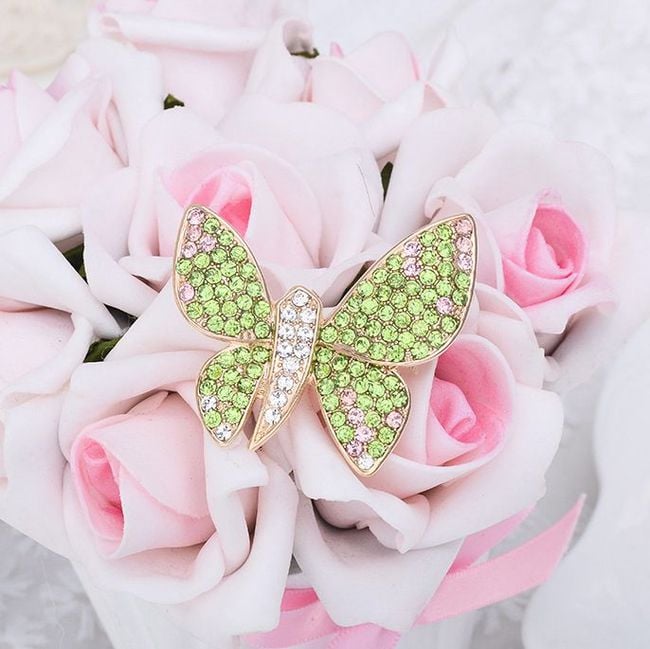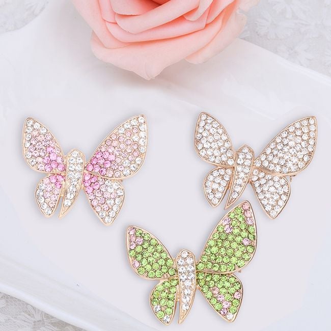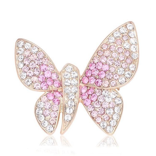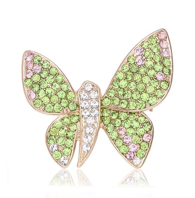 Le spille sono di nuovo di moda. Acquistane una anche tu. Questa è riccamente decorata con pietre in vetro tagliato e la forma ricorda una farfalla. Scegli tra diversi colori.