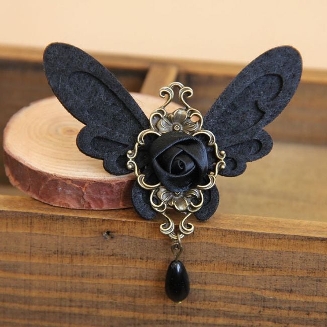 La spilla è decorata con ali e una rosellina ed è adatta per l'uso quotidiano o eventi sociali.