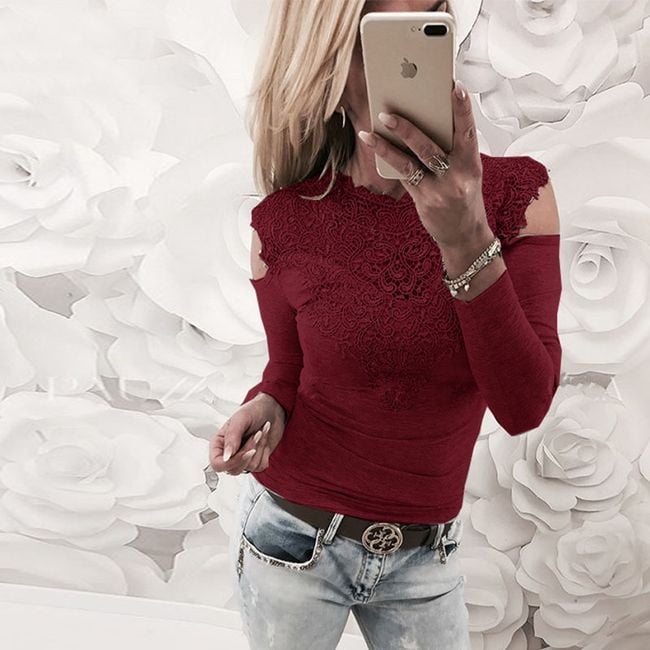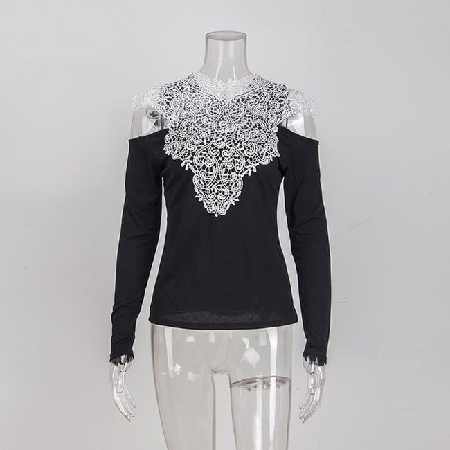 T-shirt da donna con spalle scoperte e applicazione in pizzo. Nella tabella delle taglie sono indicate le misure del prodotto, non del corpo.
