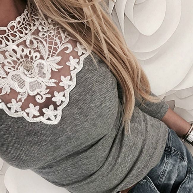 T-shirt da donna con applicazione in pizzo - 2 colori
