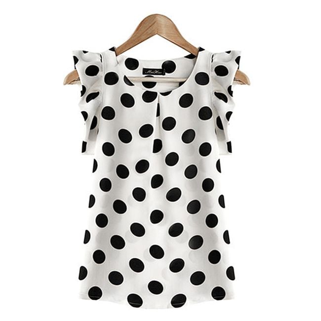Stai per uscire e cerchi qualcosa di diverso dai vestiti? Sì? Allora potresti apprezzare questa maglietta, che si abbina perfettamente sia ai pantaloni che alla gonna. Le maniche a volant sono un trend recente e ovviamente le troverai in questa maglietta. I pois non passeranno mai di moda, quindi questa maglietta sarà il tuo compagno ideale. Ti preghiamo di prestare attenzione alla tabella delle taglie nella parte inferiore della pagina.