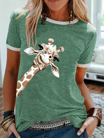 T-shirt da donna a maniche corte con stampa – Giraffa