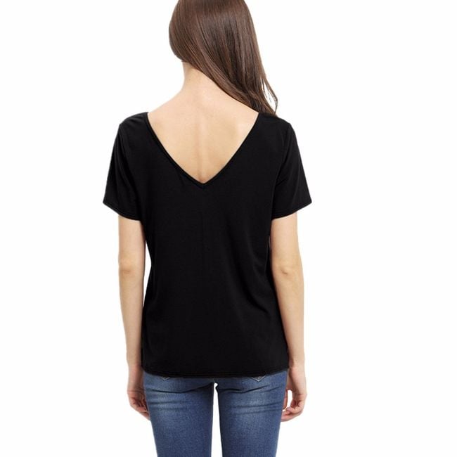La maglietta da donna a maniche corte ha una vestibilità ampia e presenta un elemento interessante sotto forma di scollatura profonda con nastri incrociati. È disponibile in 3 colori.