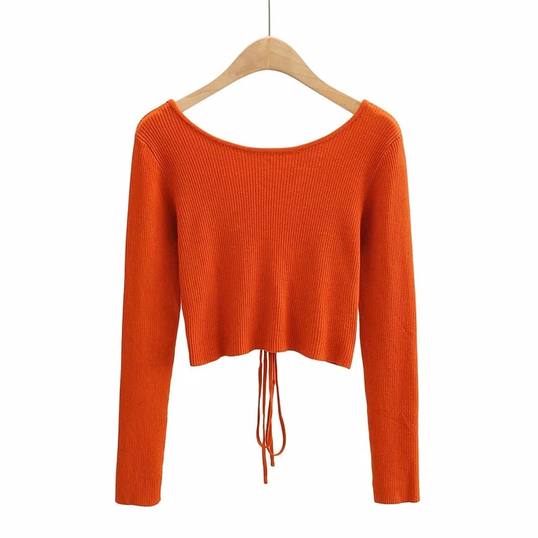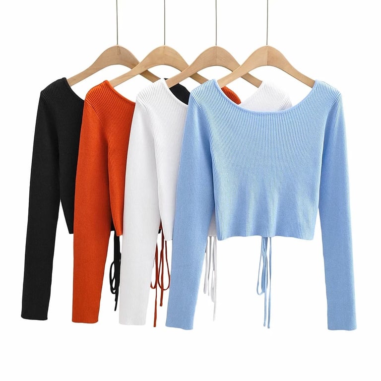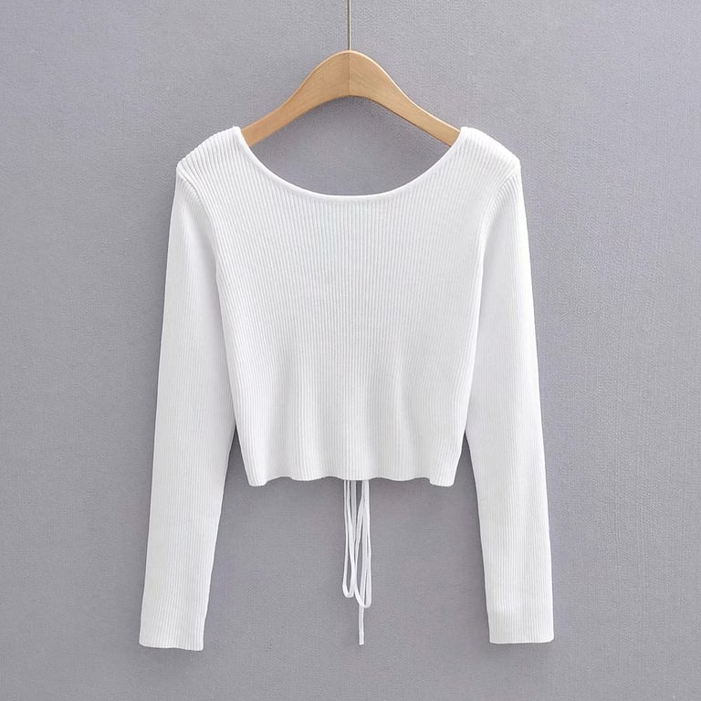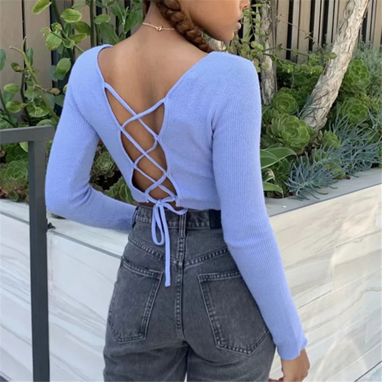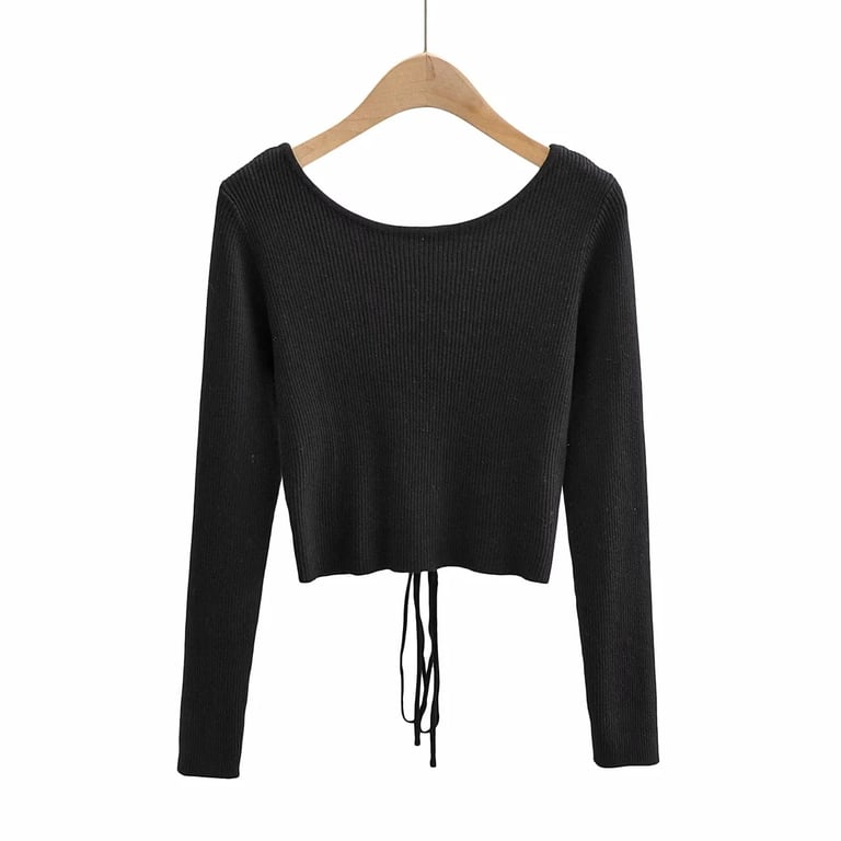 • T-shirt da donna con maniche lunghe e schiena particolare grazie ai lacci che attraversano tutta la parte posteriore.