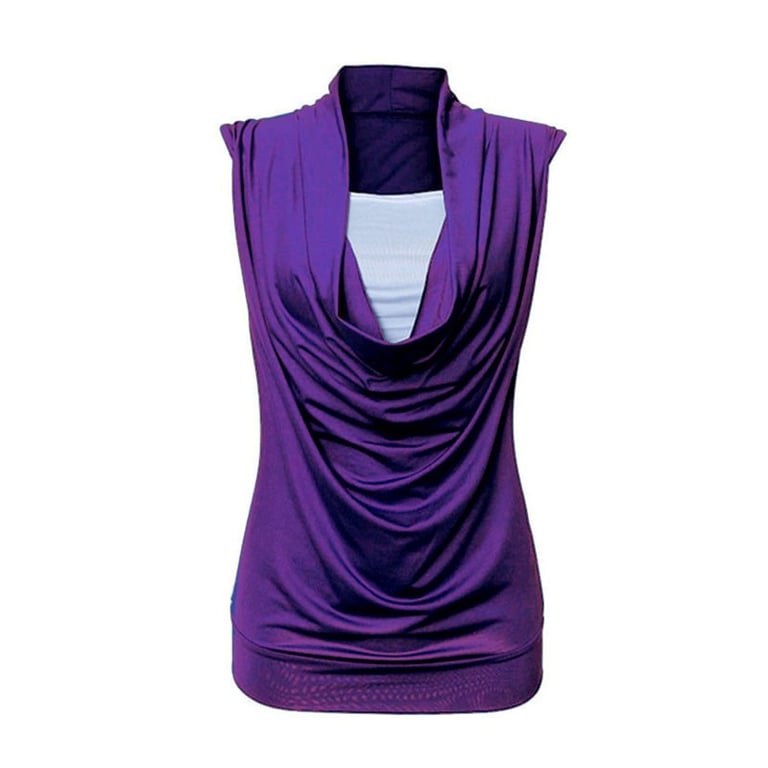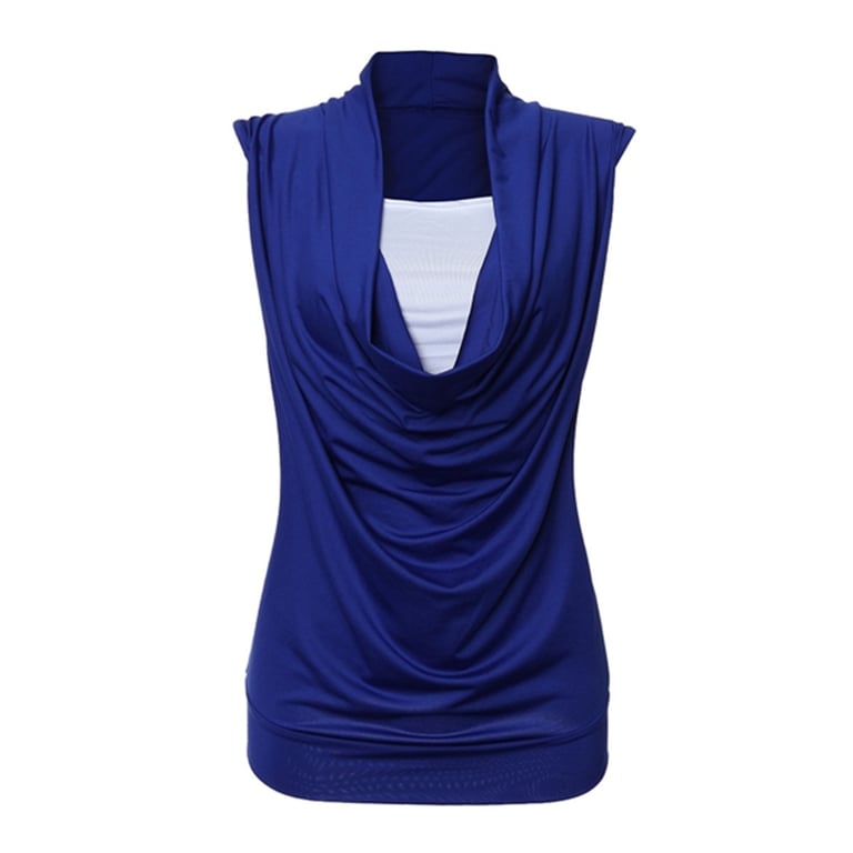 Top alla moda da donna senza maniche, realizzato in due colori. Scollo rotondo con arricciature lungo tutta la lunghezza del top.