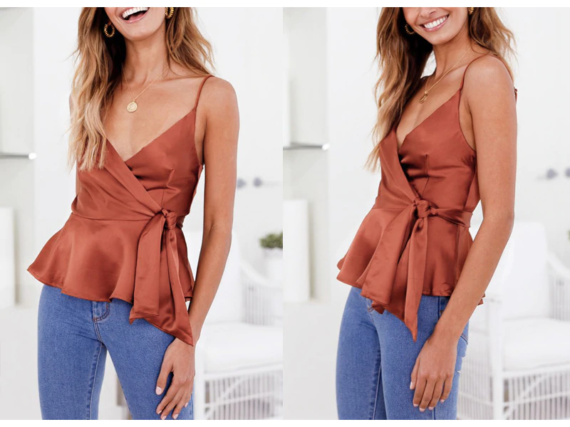Top avvolgente elegante da donna con fiocco in vita. Adatto per eventi formali.
