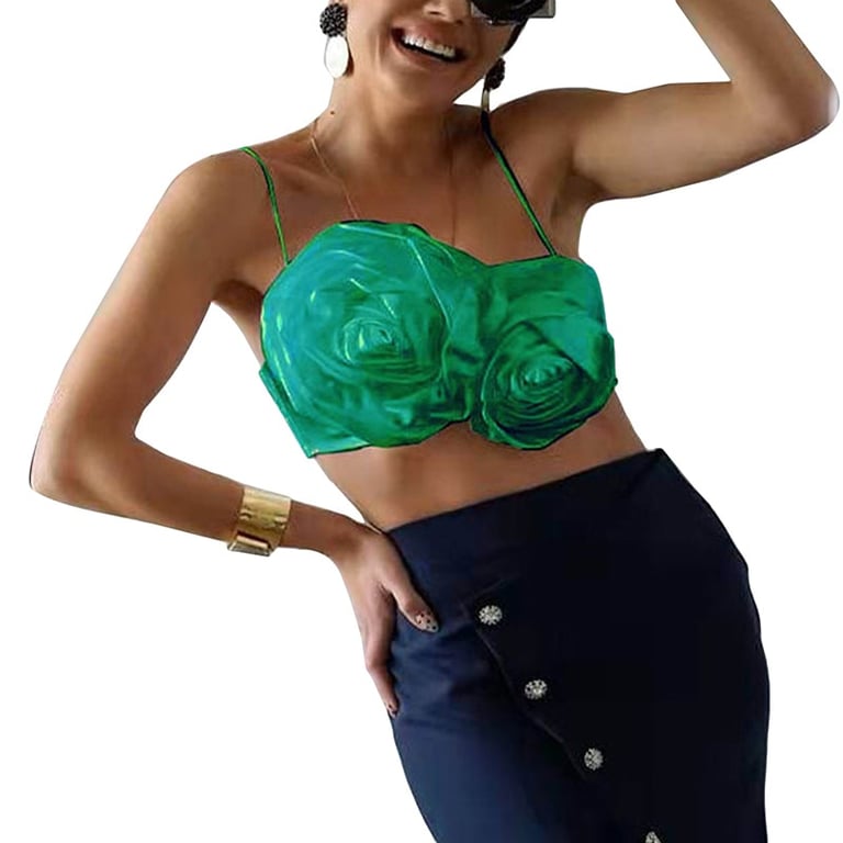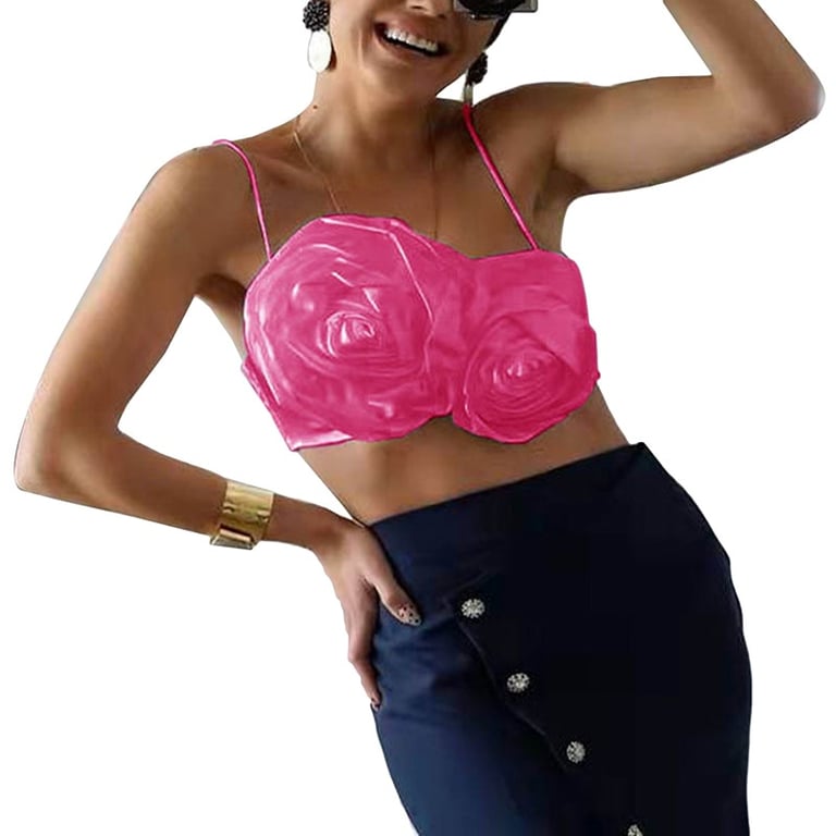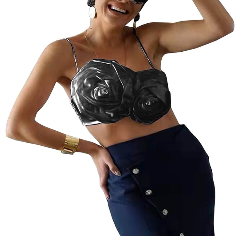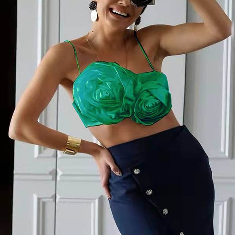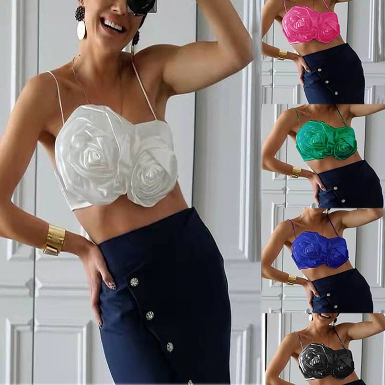 Top corto da donna con arricciature floreali