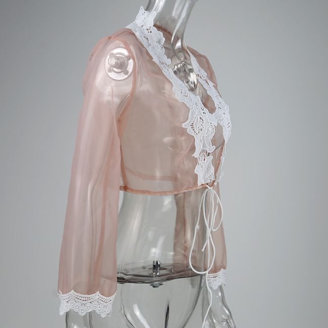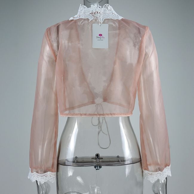 Il crop top trasparente con pizzo sarà un pezzo sexy e originale per le giornate estive. Le misure indicate si riferiscono al prodotto, non al corpo.