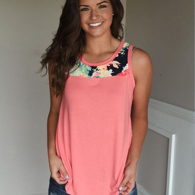 Top da donna di taglio comodo con motivo floreale sulla schiena. Puoi scegliere tra 4 varianti di colore.