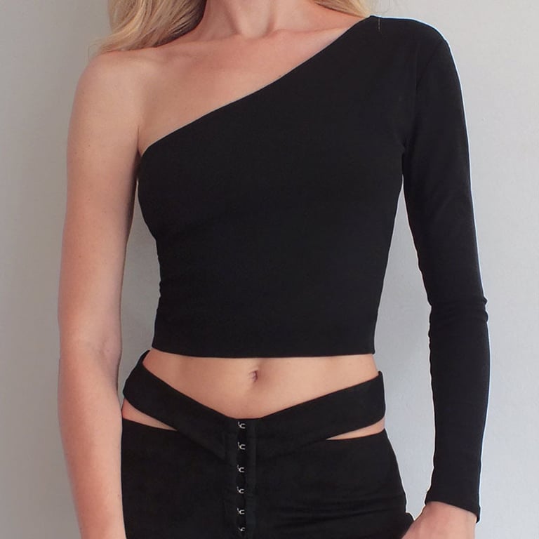 Top corto originale da donna con una manica e schiena scoperta