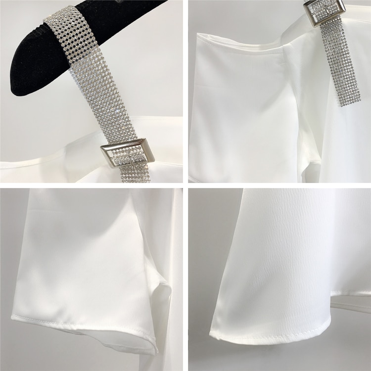 Top elegante da donna con strass sulla spalla Julia.