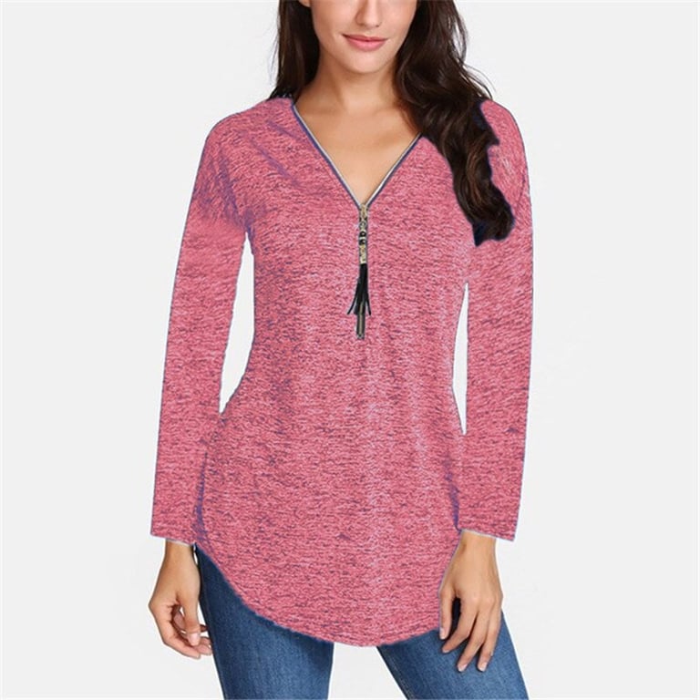 Top da donna a maniche lunghe. Taglio lungo e morbido con mélange. Scollatura a V con chiusura decorativa con zip. Disponibile in diverse varianti di colore.