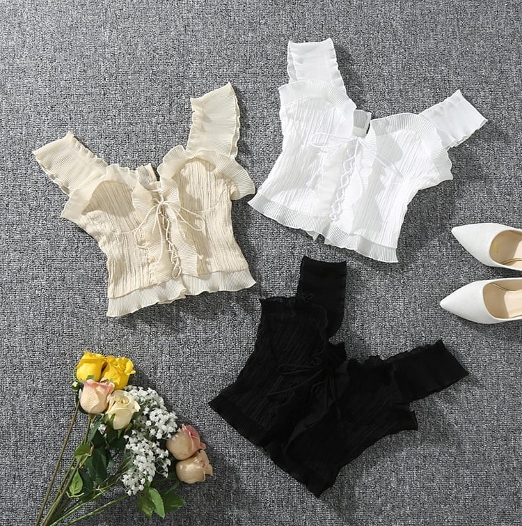 Top corto estivo da donna con alla moda lacci. Ideale per le calde giornate estive.