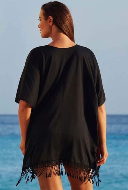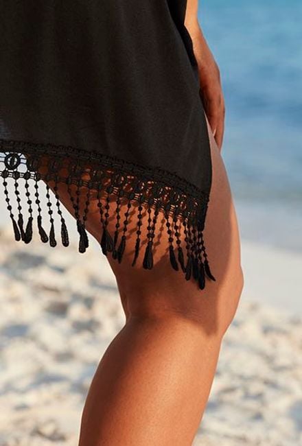 Tunika da spiaggia donna con frange. Nella tabella delle taglie sono indicate le misure del prodotto, non del corpo.