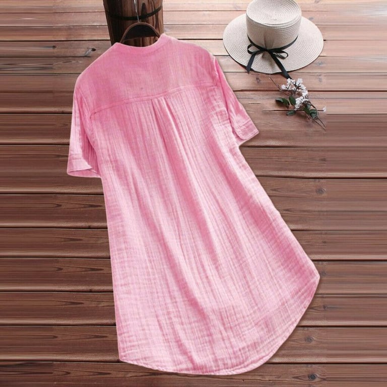 Camicia tunica da donna con maniche corte. Taglio lungo e ampio con scollatura rotonda e tasca sul petto. Disponibile in diverse varianti di colore.