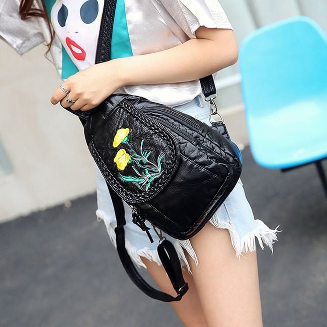 Lo zaino è decorato con un bellissimo ricamo moderno ed è adatto non solo per la scuola.