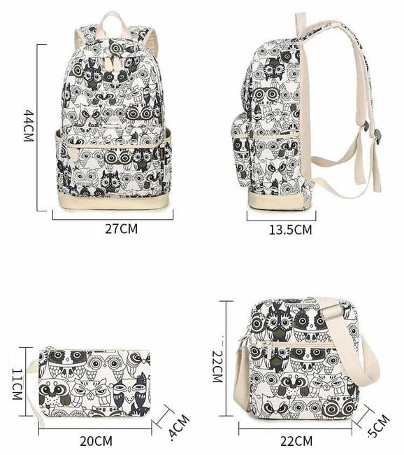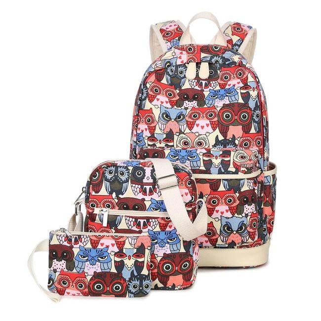 Lo zaino con un motivo originale di gufi è ideale per la scuola, il lavoro o per escursioni in città. All'interno troverete una tasca separata per il laptop, una tasca con chiusura a zip e due tasche aperte per piccoli oggetti. All'esterno c'è una tasca con zip e tasche laterali aperte. Nella parte superiore è presente un manico per una facile maneggevolezza. Le spalline sono regolabili. Lo zaino è disponibile singolarmente o in un set con una borsa a tracolla e una piccola pochette. Sono disponibili due varianti di colore: beige o rosso.