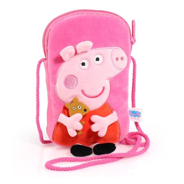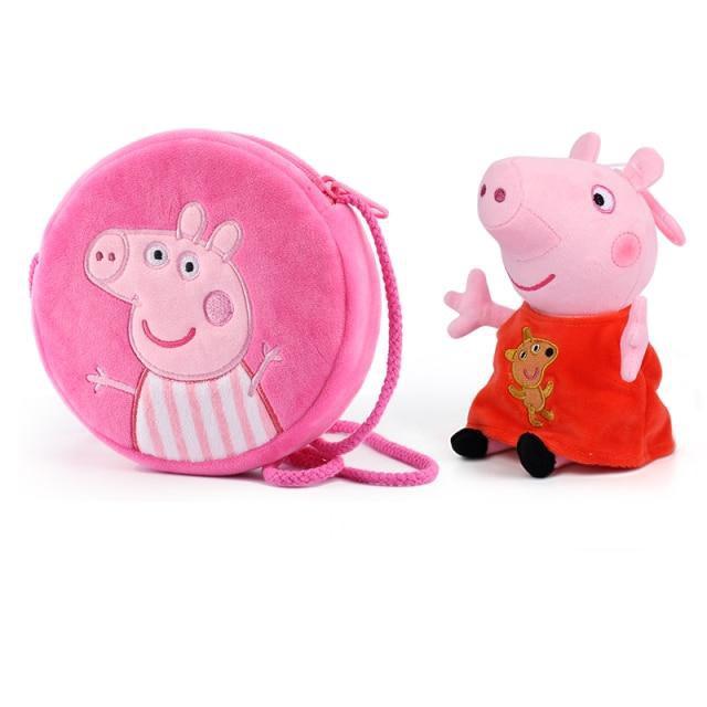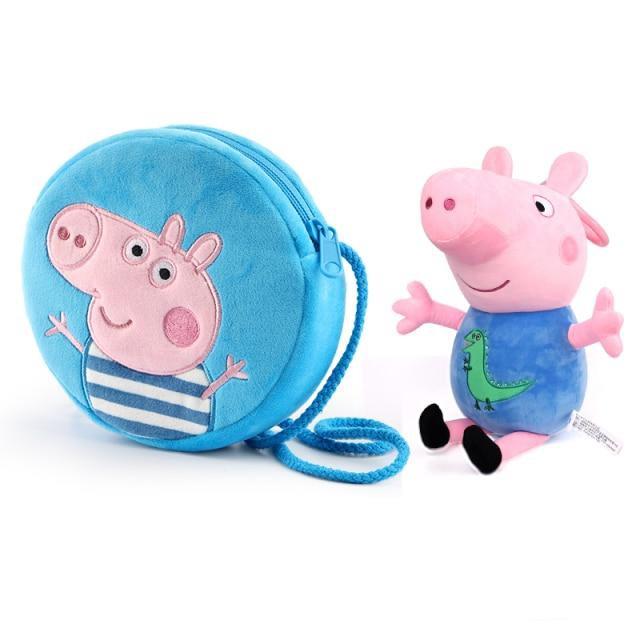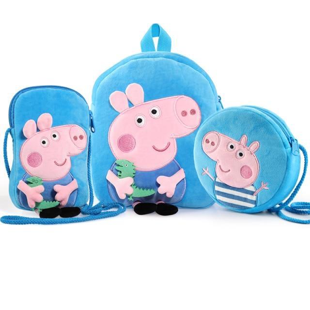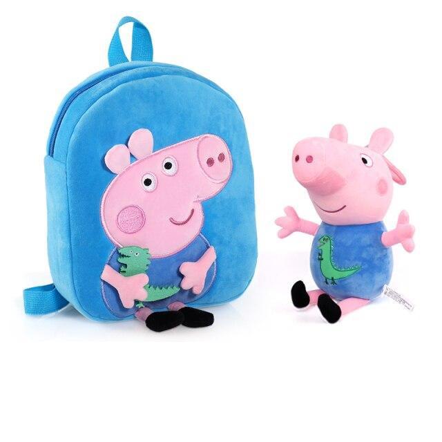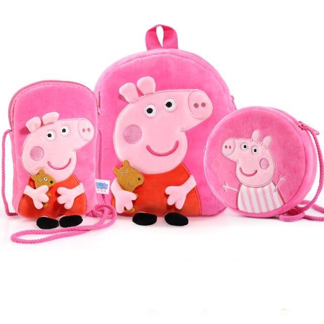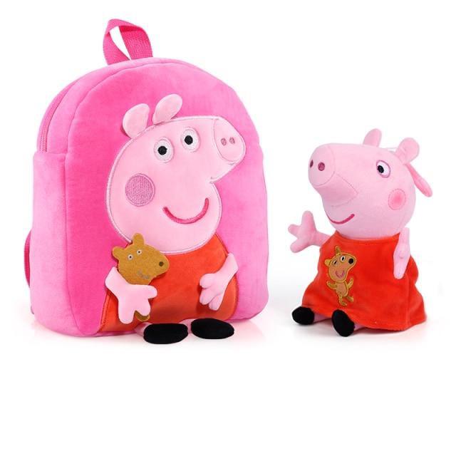 Super zaino per bambini in peluche con l'immagine di Peppa Pig. Disponibile in rosa o blu. Disponibili anche borse a tracolla.