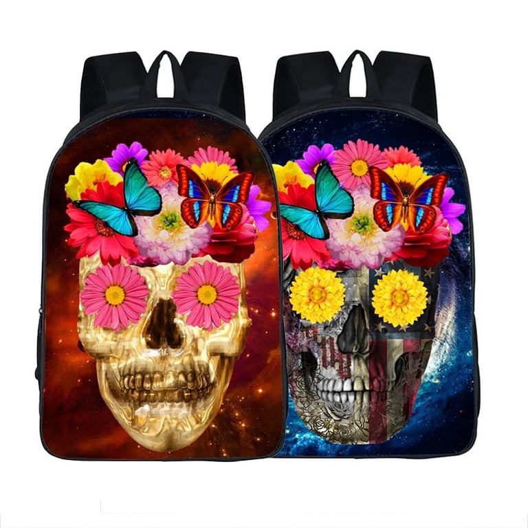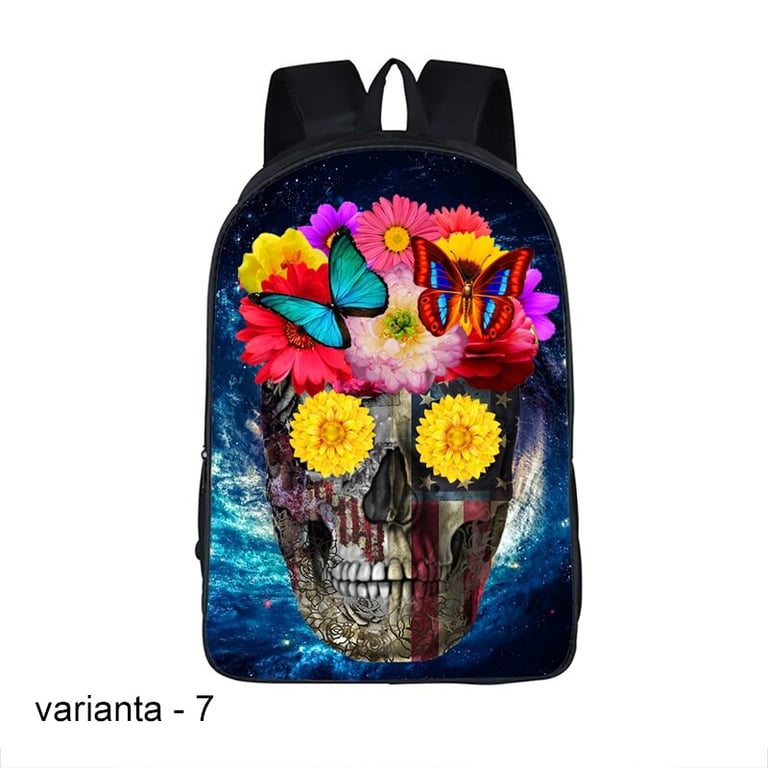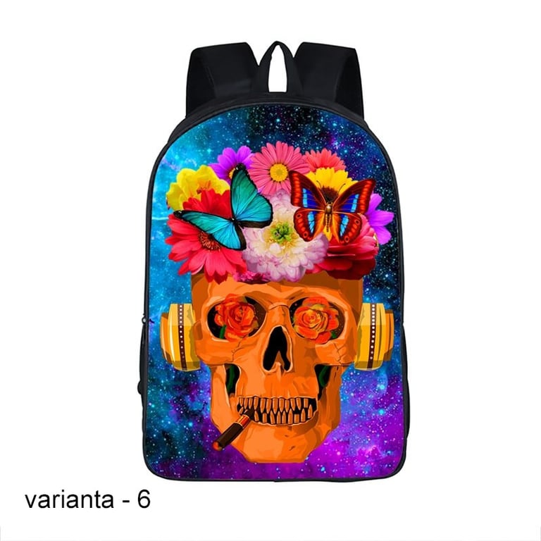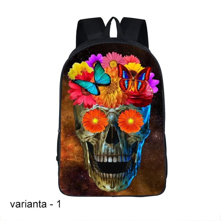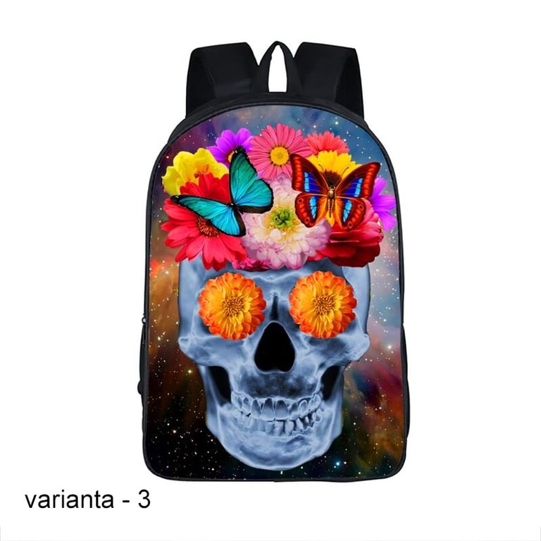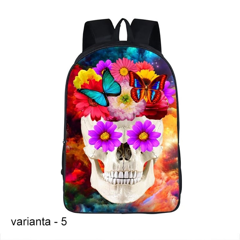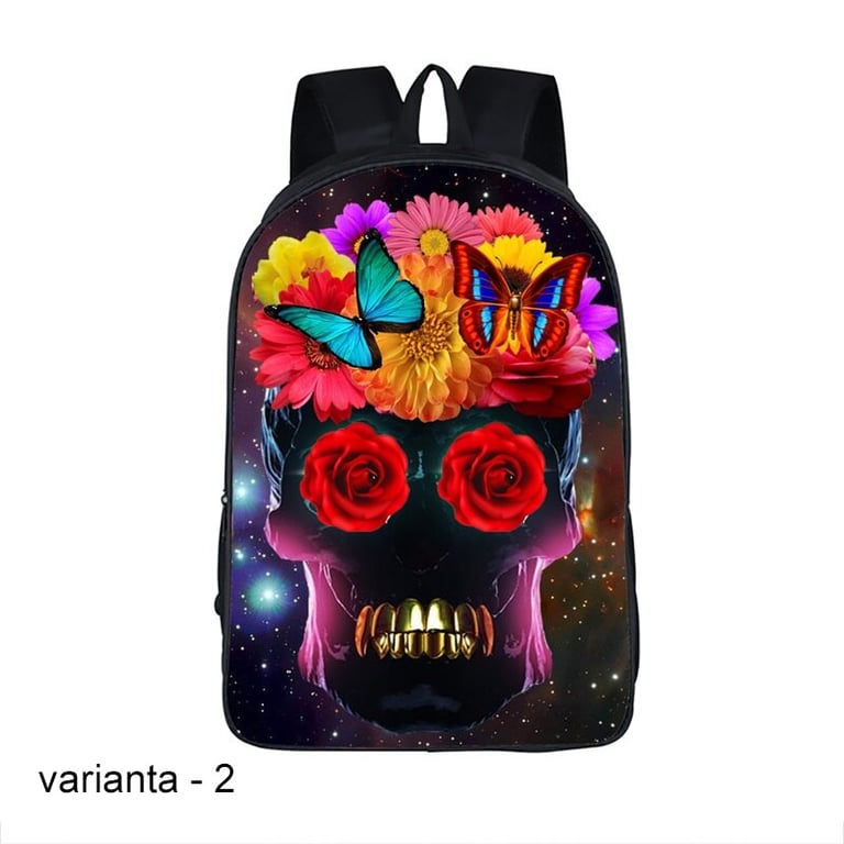 Zaino stiloso con un motivo molto attraente a forma di teschio messicano con fiori di design.