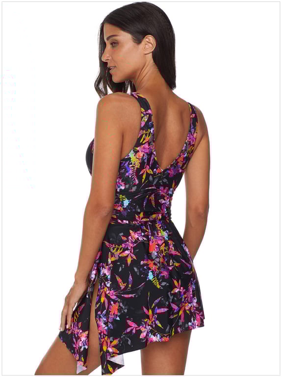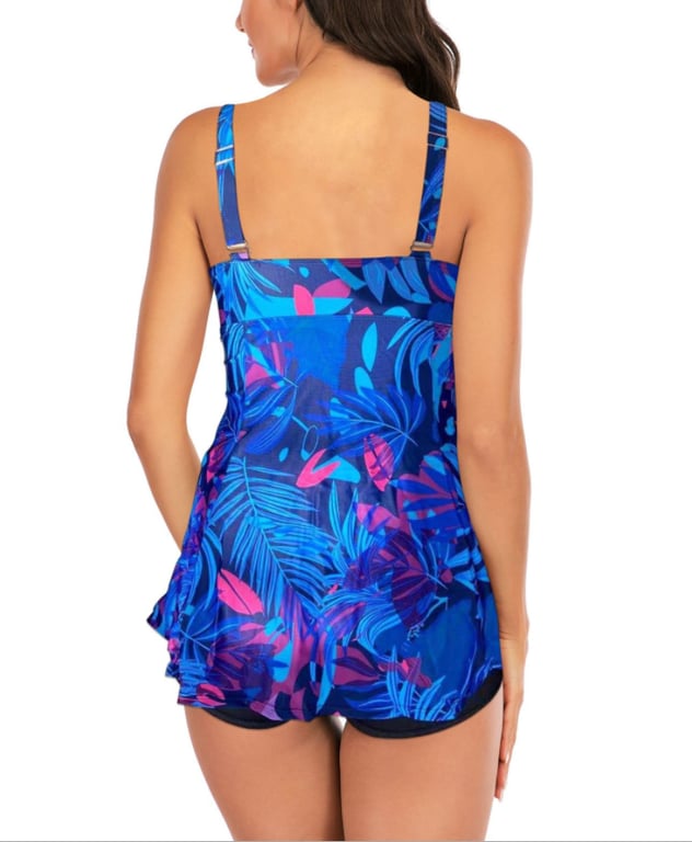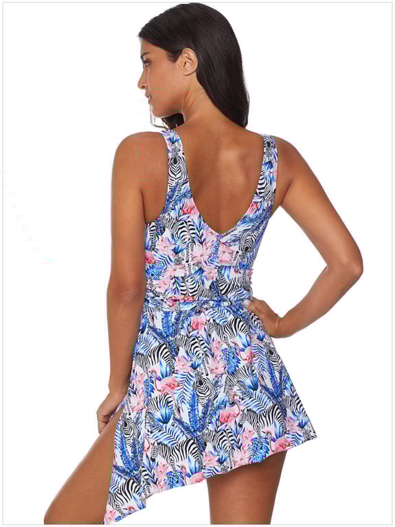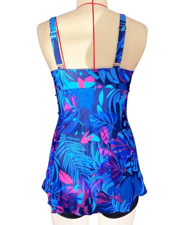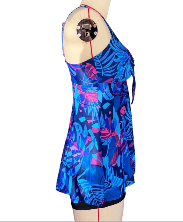 La parte superiore è progettata come un abito e sotto di essa è già cucita la parte inferiore, che sembra un costume da bagno classico.