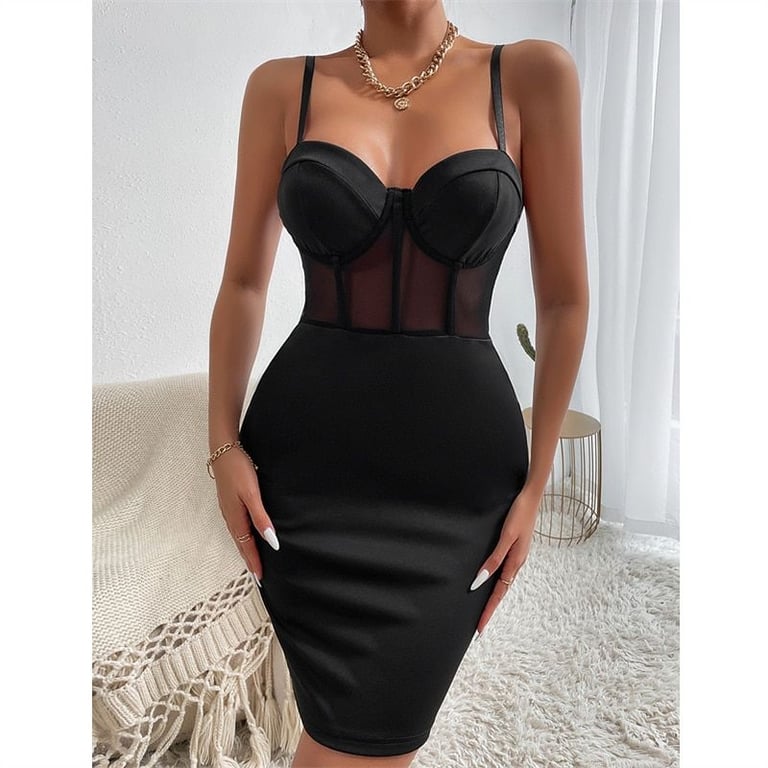 Sexy abito da sera nero con un corpetto dal design interessante.
