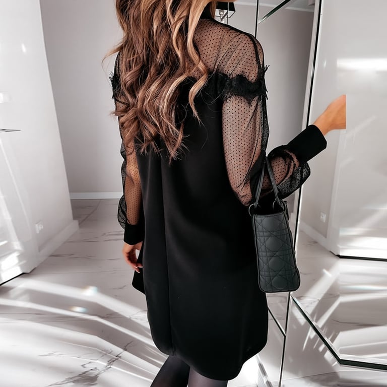Abito elegante da donna con maniche lunghe decorate