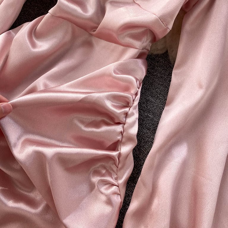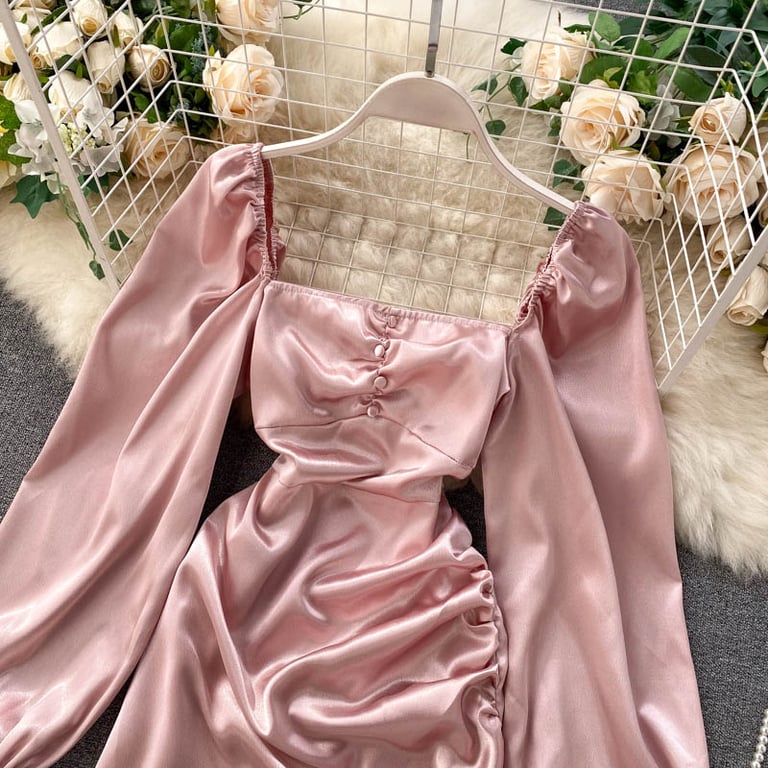 • Etichette: Abiti da donna, abiti in satin, abiti con maniche lunghe, abiti corti, manica a palloncino, elegante, stiloso, aderente