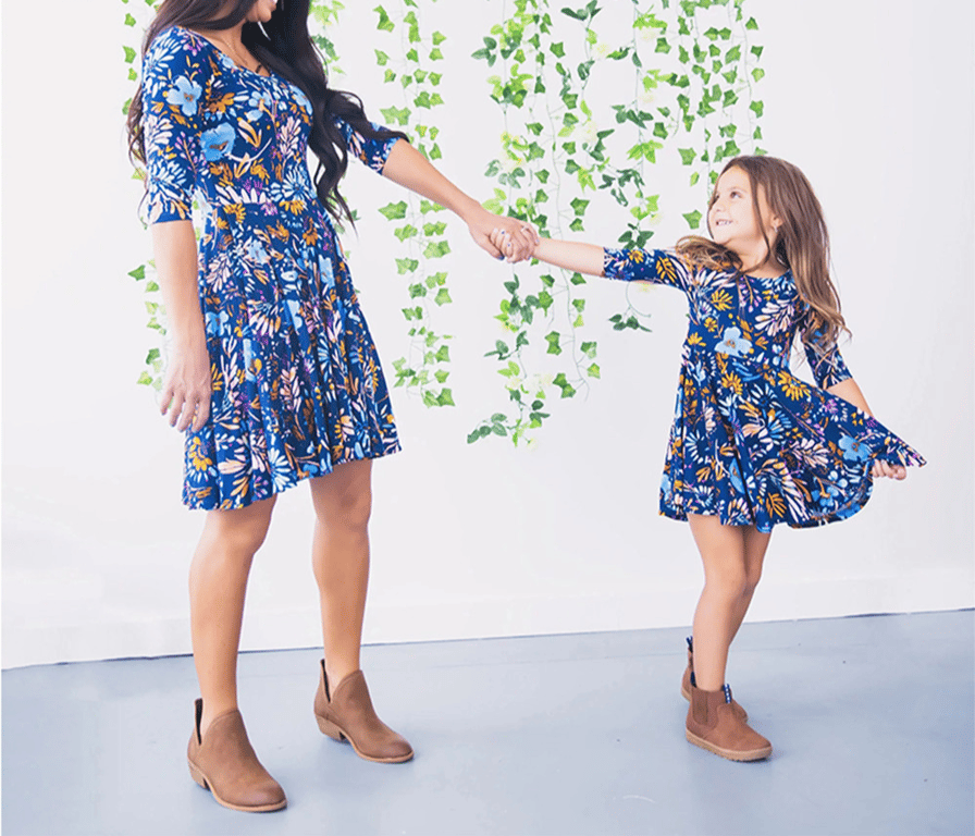 Abiti estivi corti per famiglie con motivo floreale e maniche 3/4