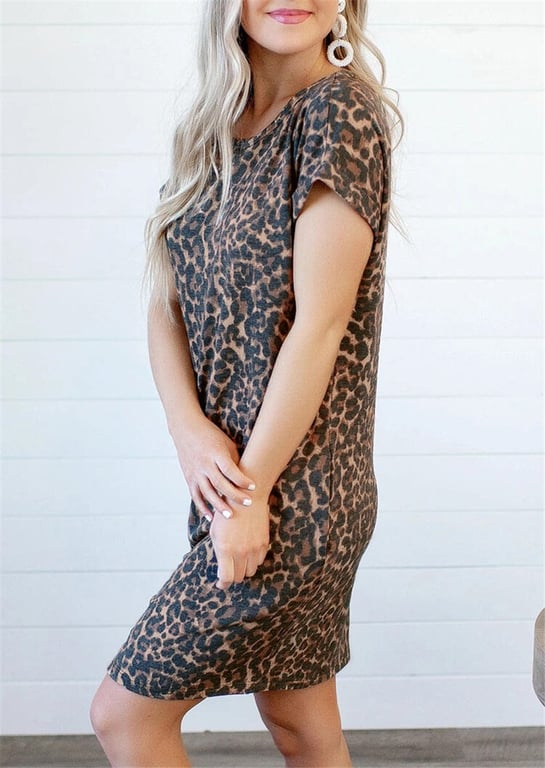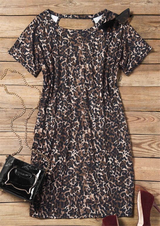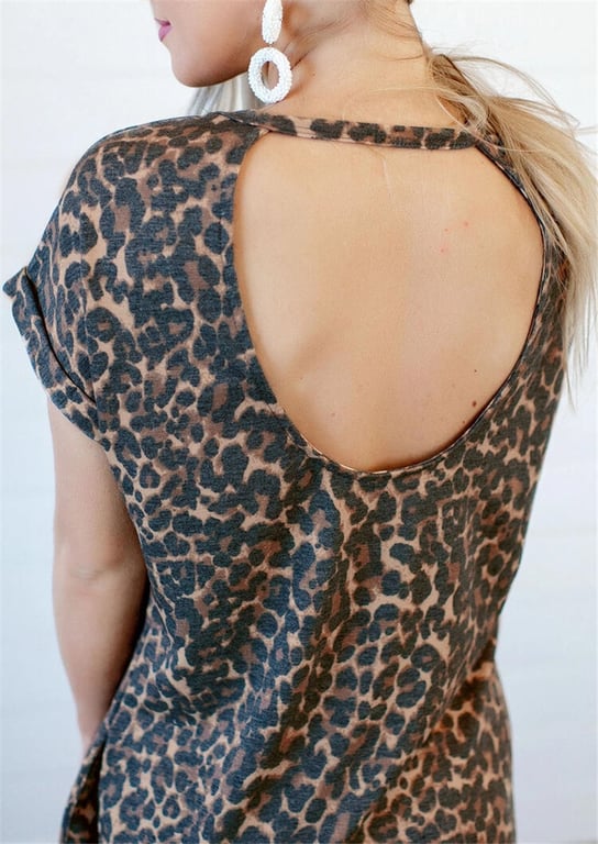Abiti da donna a stampa leopardata con tasche e schiena scoperta