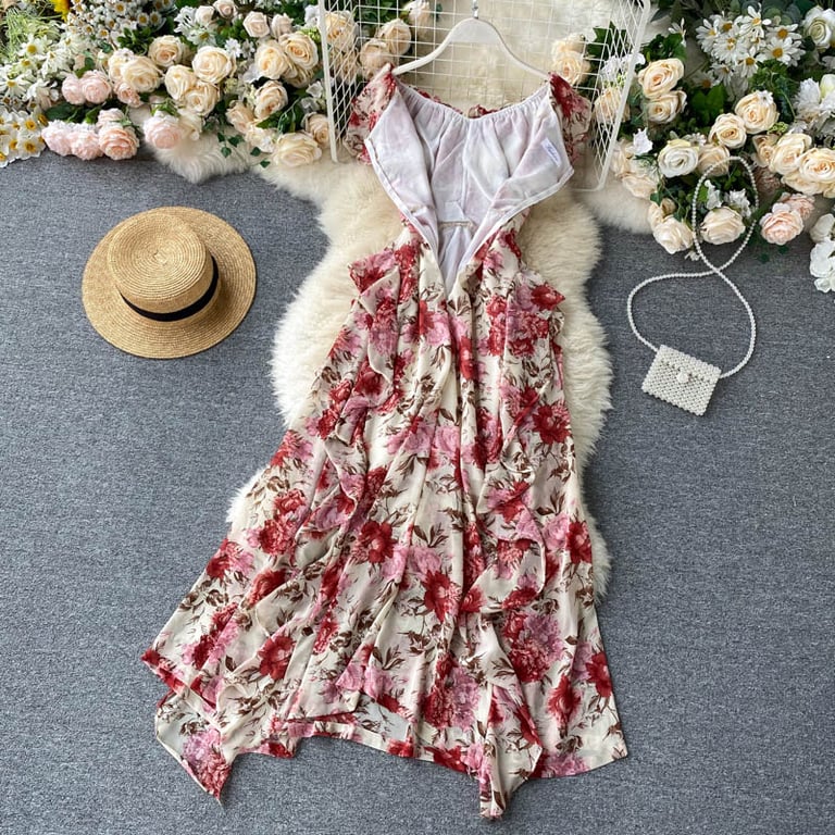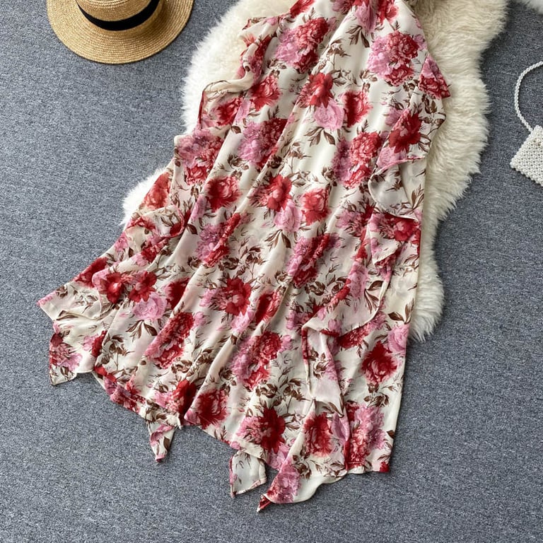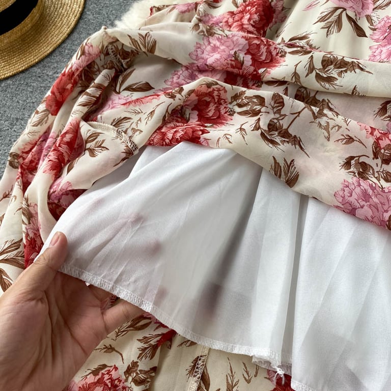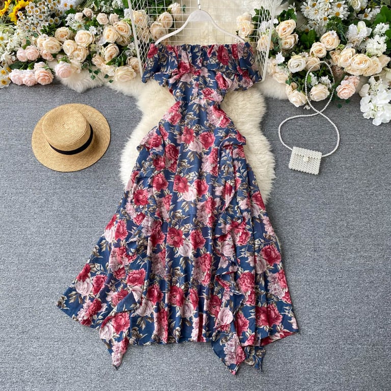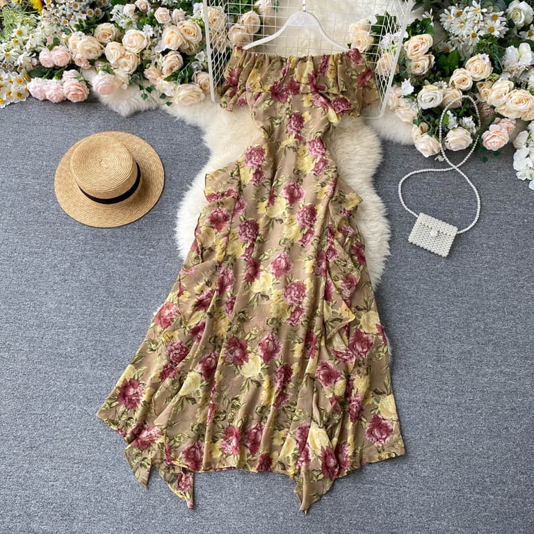 Abito lungo da donna in stile vintage con fiori