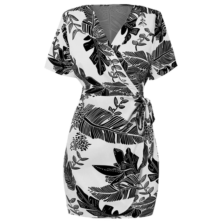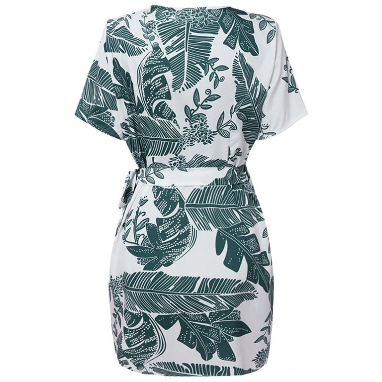 Abito corto da donna con una discreta stampa di foglie.