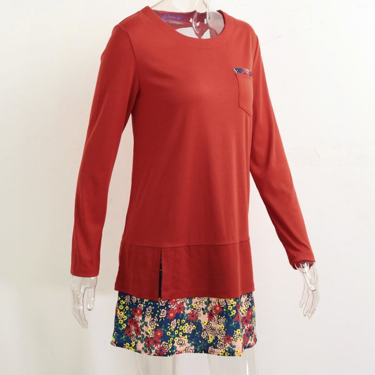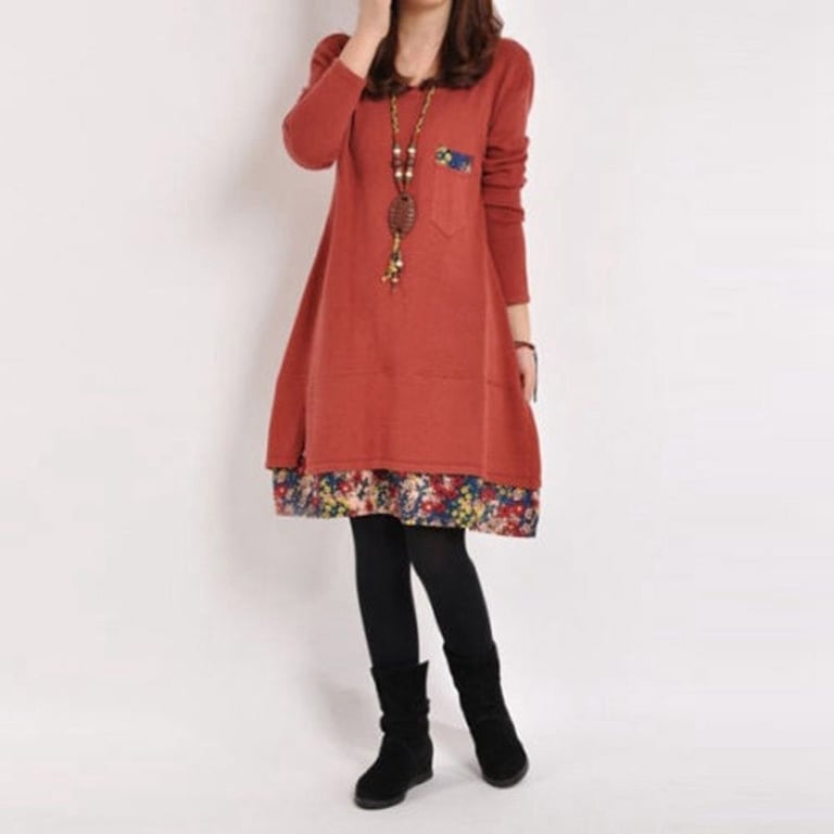 Abito da donna in stile vintage. L'abito ha maniche lunghe e scollatura rotonda. Taglio a trapezio comodo e ampio. Tasca sul petto. Taglie plus size. Disponibile in diversi colori.