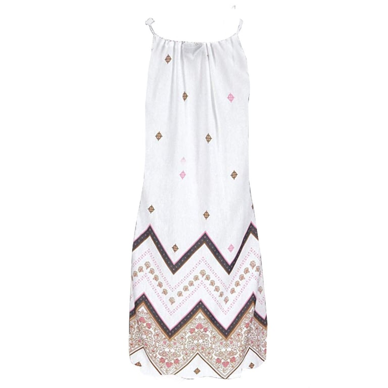 L'abito ha un bellissimo motivo boho e una piccola scollatura sul petto. È senza spalline.