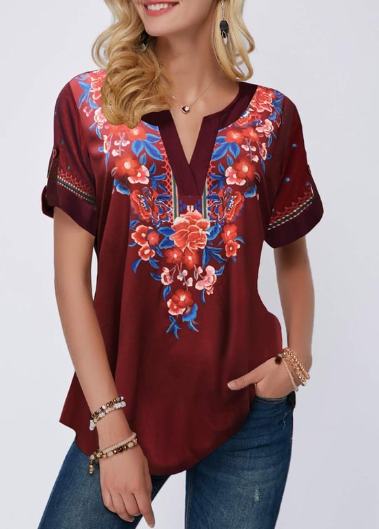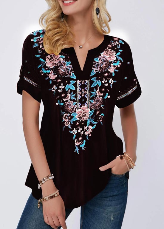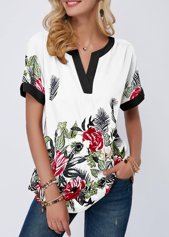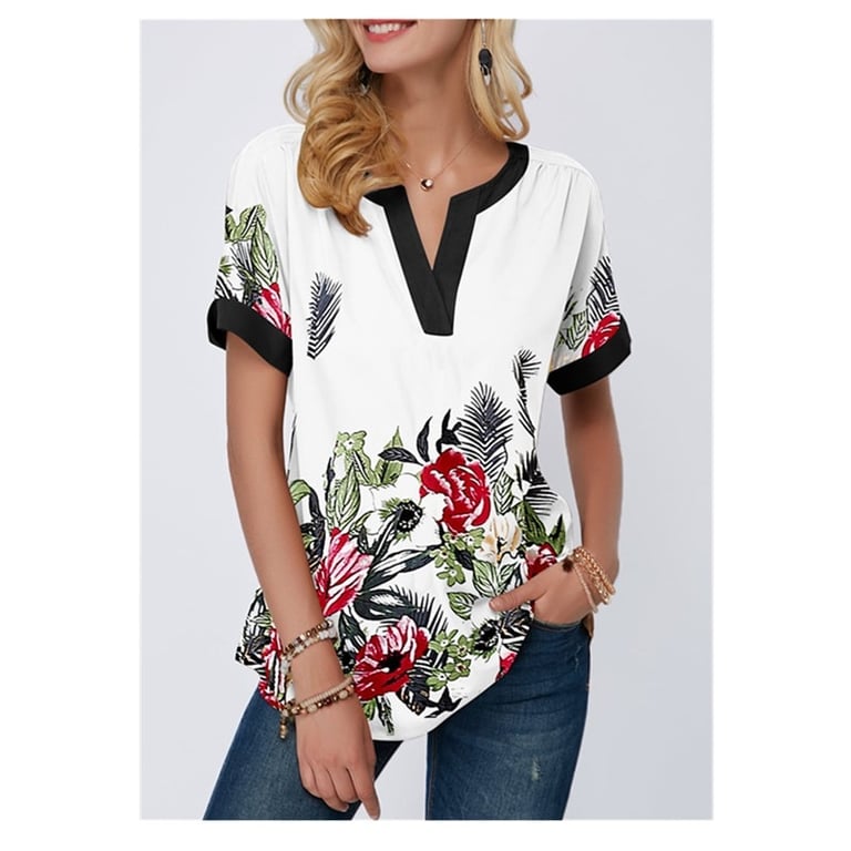 • Etichette: Blusa da donna, piacevole, comoda, elegante, moda femminile, con maniche corte, con stampa, con fiori, con stampa