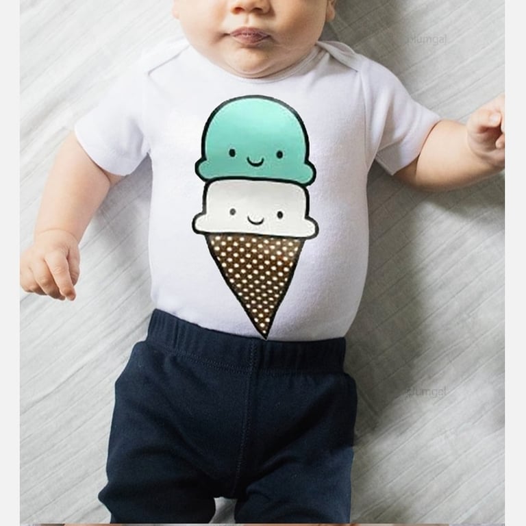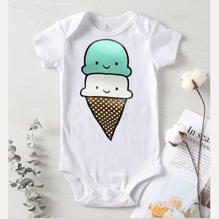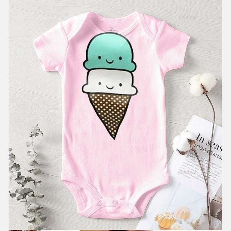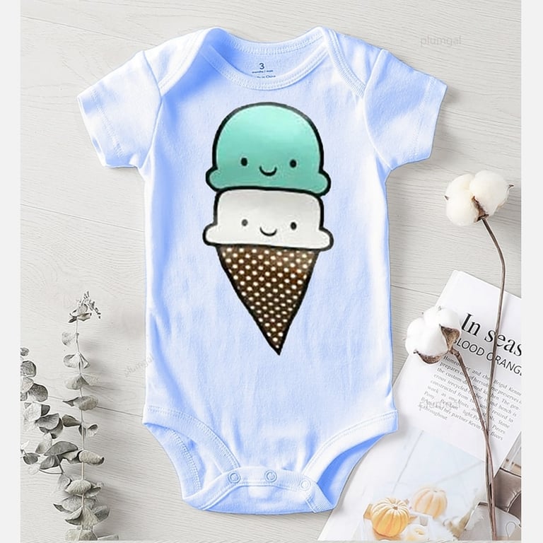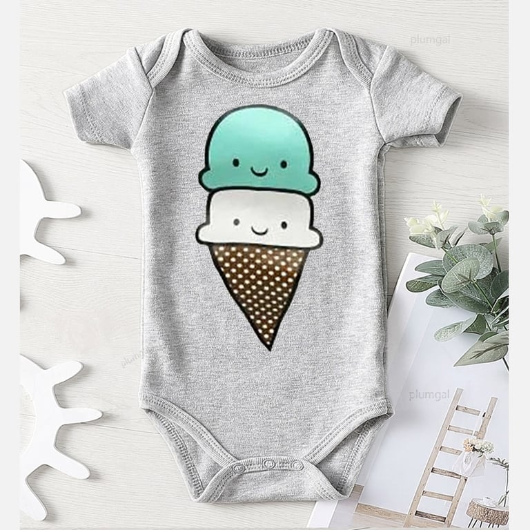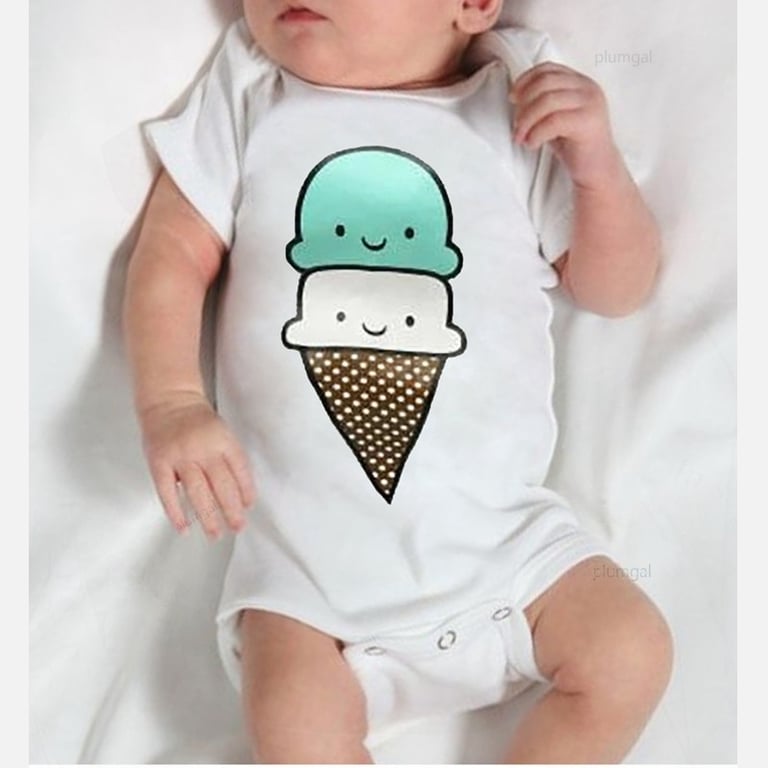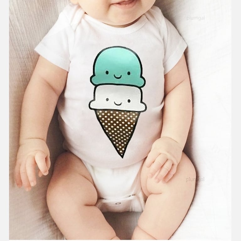 Body in cotone per bambini con maniche corte e stampa di gelato