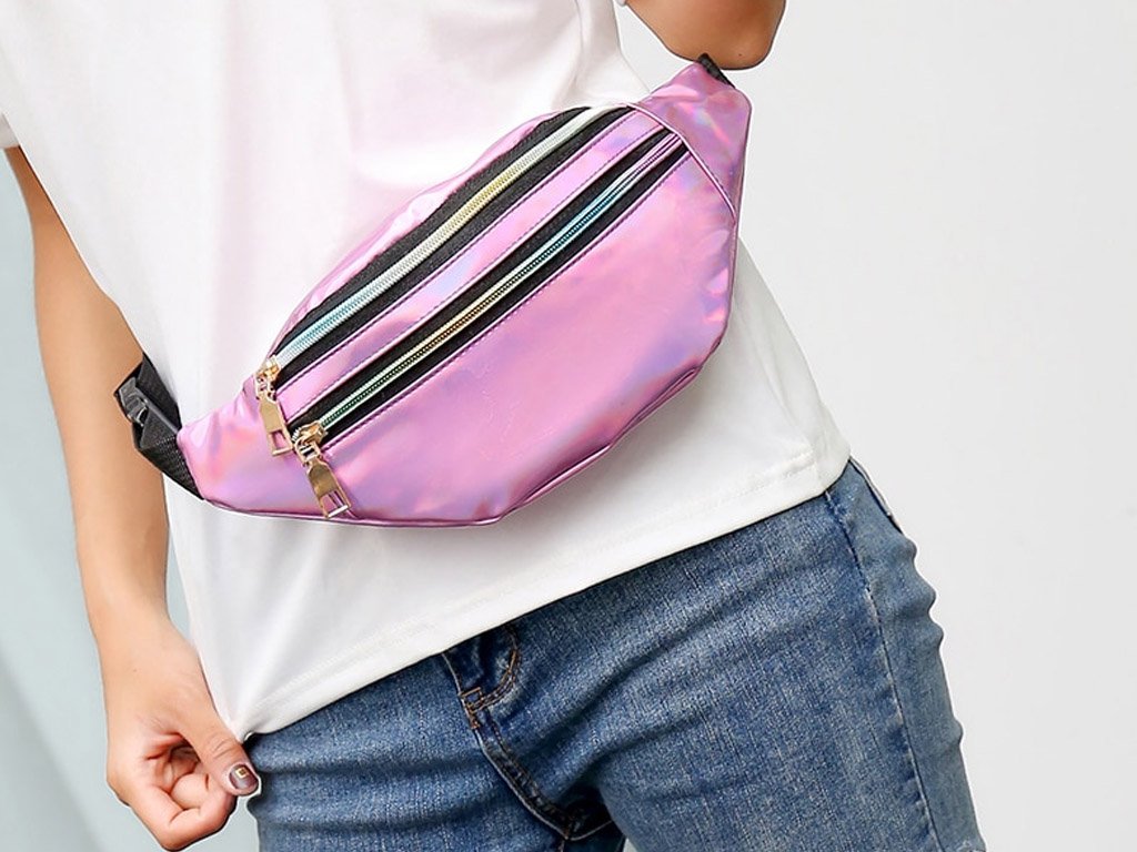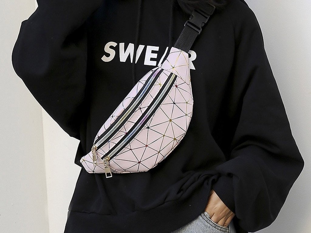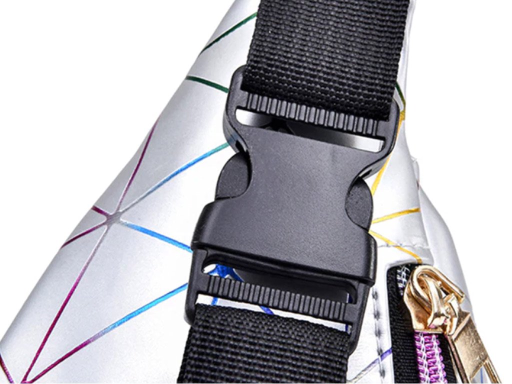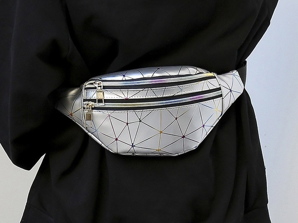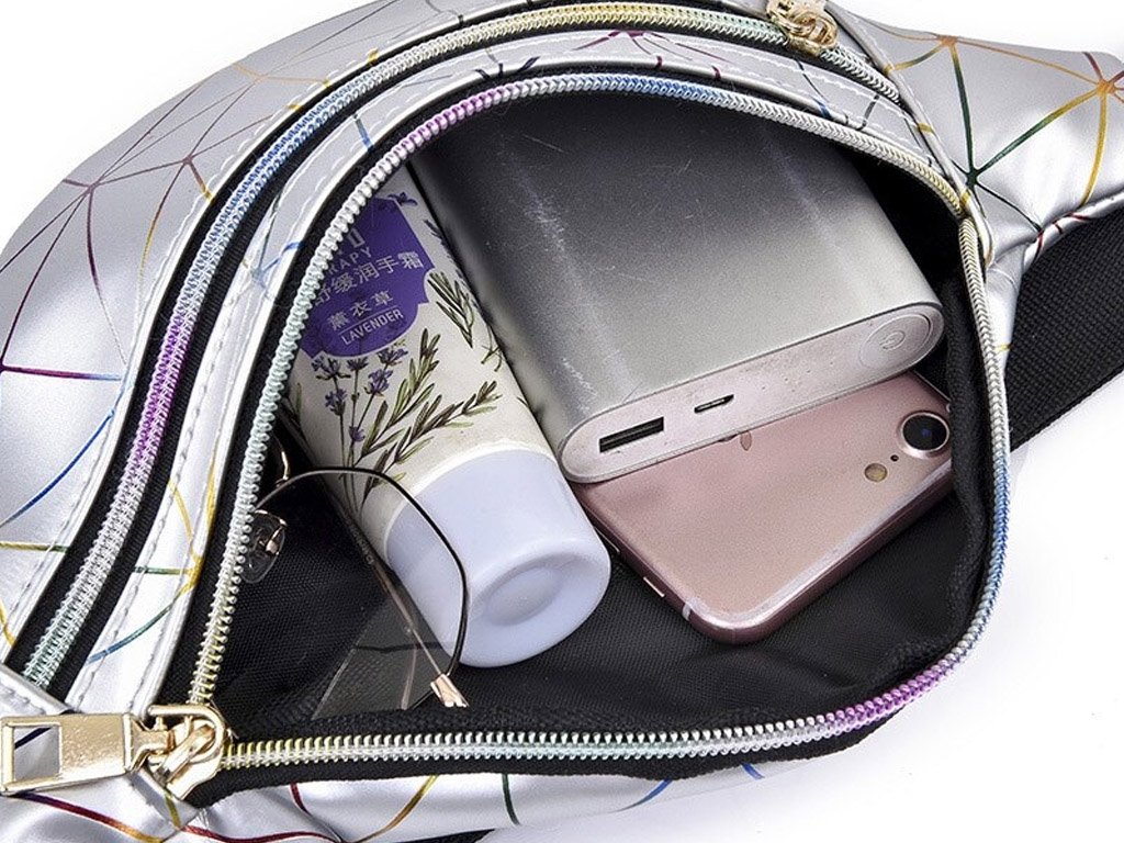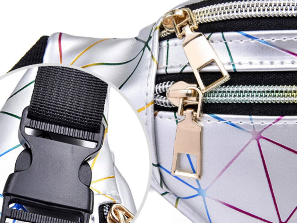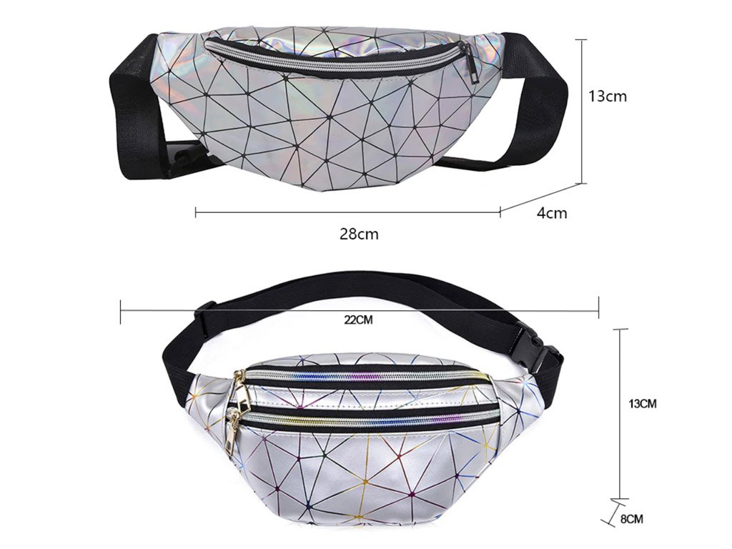 La borsa a vita olografica di design brilla di tutti i colori, specialmente al sole e alla luce artificiale. Le borse con effetto olografico e motivi geometrici sono disponibili in molte varianti di colore! È un accessorio pratico e alla moda per escursioni, in bicicletta, festival, viaggi avventurosi e attività sportive.