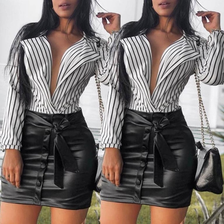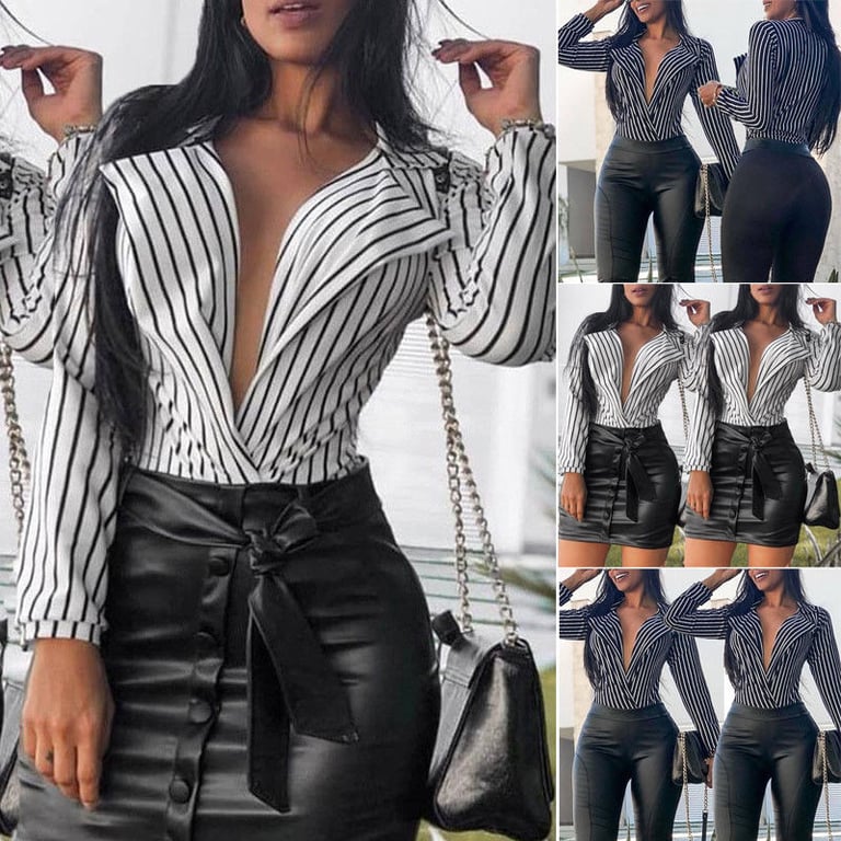 Camicia a righe da donna con scollatura a V