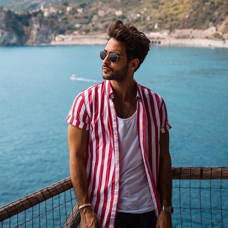 Camicia estiva a righe da uomo informale