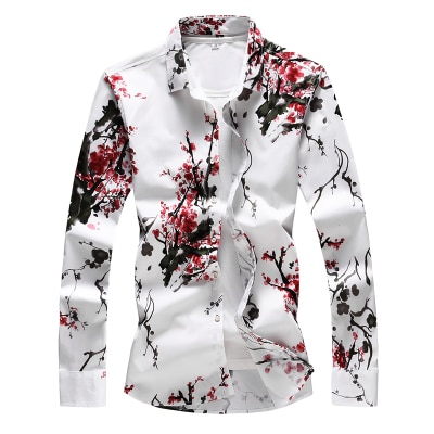 Camicia da uomo a maniche lunghe con stampa floreale