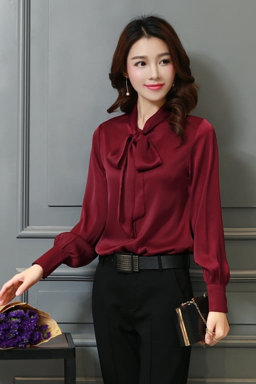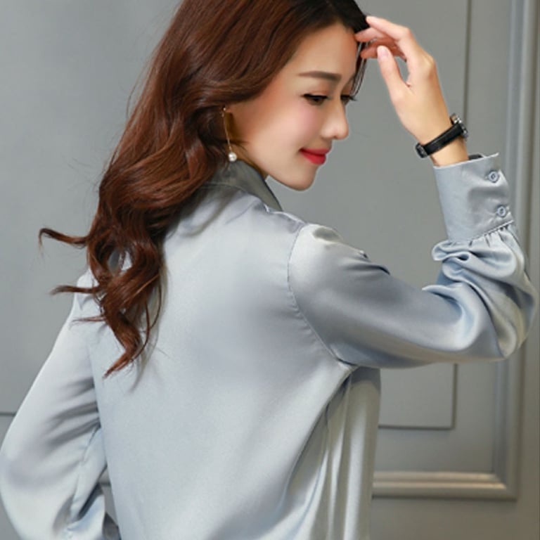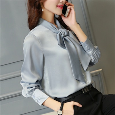 Camicia elegante lucida da donna con fiocco