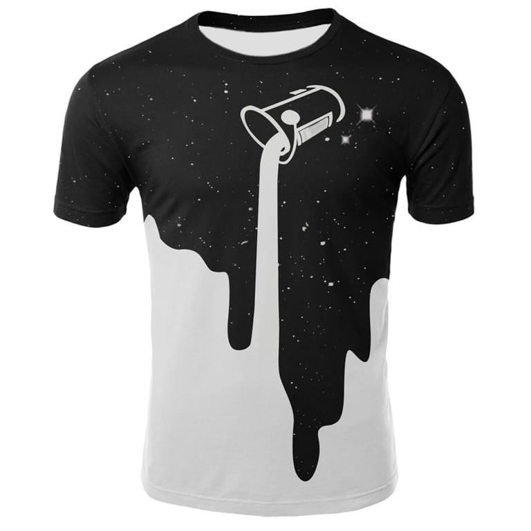T-shirt stilosa da uomo, adatta per l'uso quotidiano. La maglietta ha maniche corte e un taglio classico. È decorata con una stampa di colore versato.