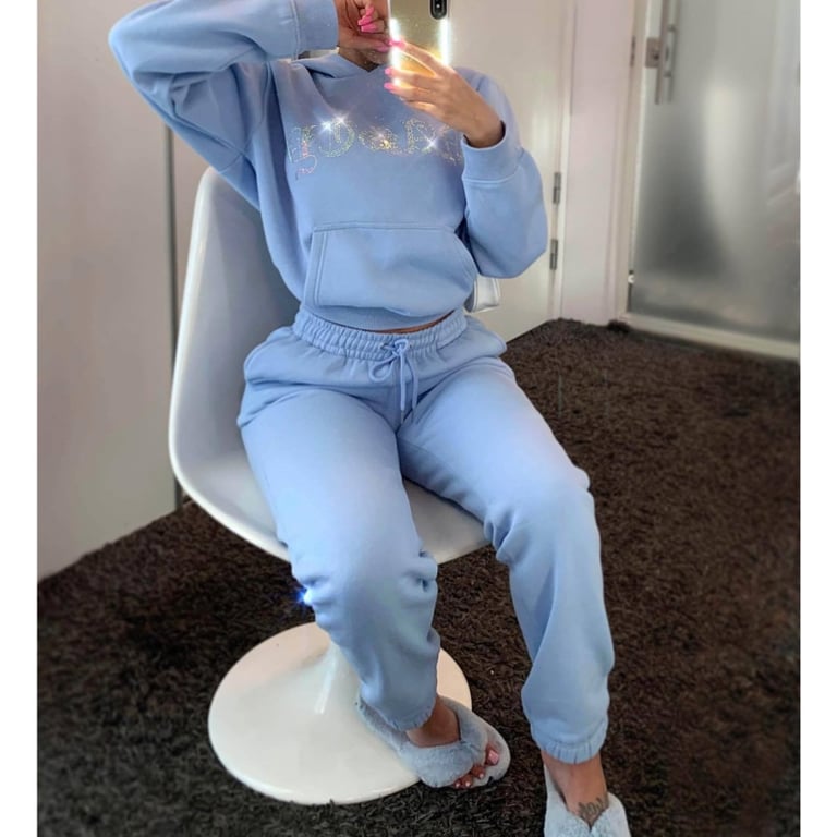 Completo da donna di lusso con scritta di strass