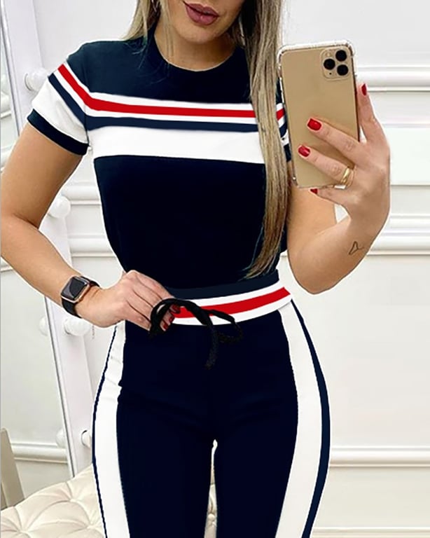 Completo moda a righe da donna