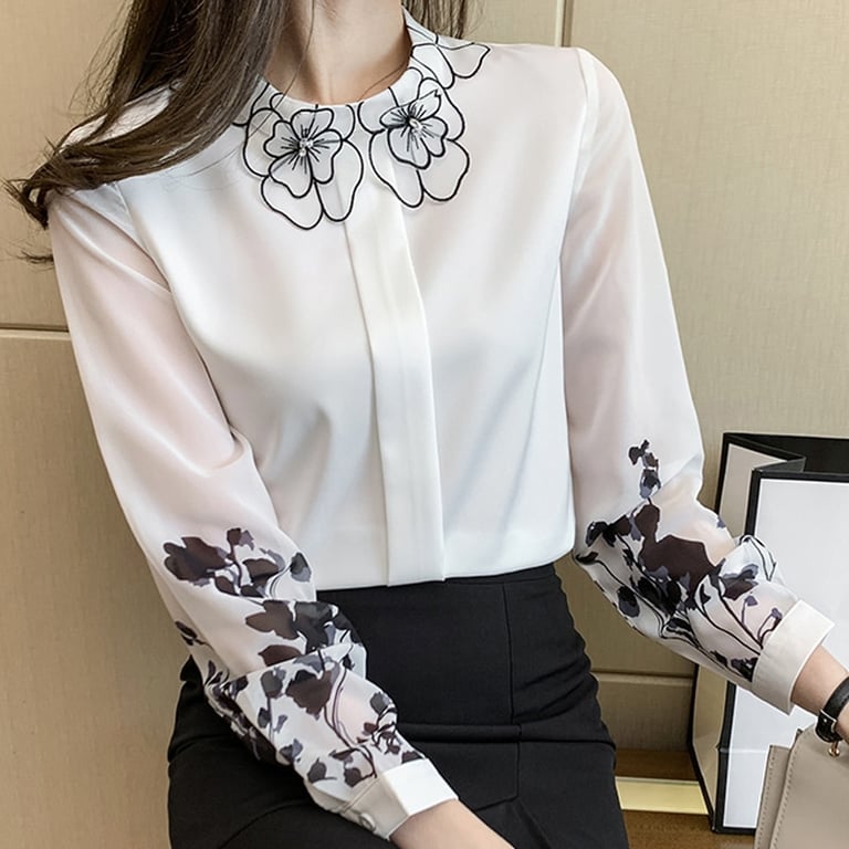 • Etichette: Blusa da donna, piacevole, comoda, elegante, moda femminile, blusa a maniche lunghe, con ricami, con colletto, colletto, fiori, blusa floreale