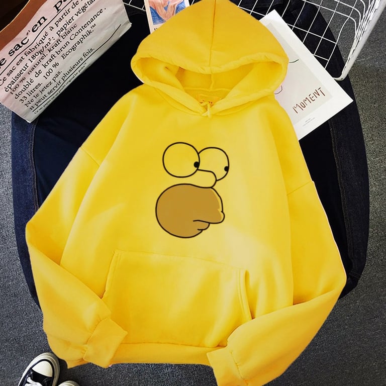 Felpa alla moda con cappuccio e tasca a marsupio con motivo di Homer Simpson