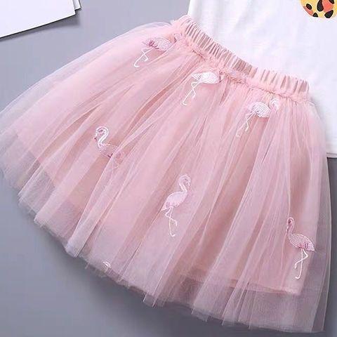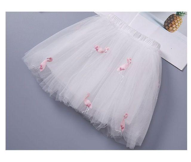 Gonna in chiffon per ragazze. Bellissima realizzazione originale con piccoli fenicotteri ricamati. Disponibile in tre colori.