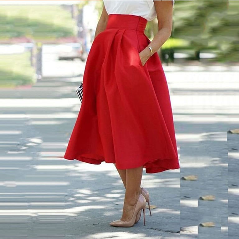 Gonna da donna in un lussuoso colore rosso. La gonna ha una ampia forma a campana. Vita alta. Materiale leggero e arioso.