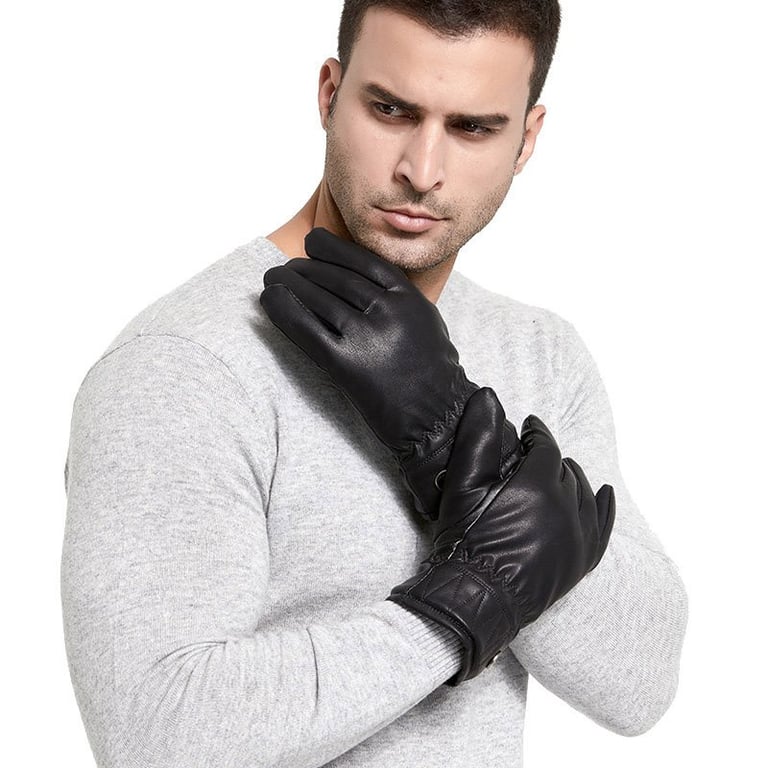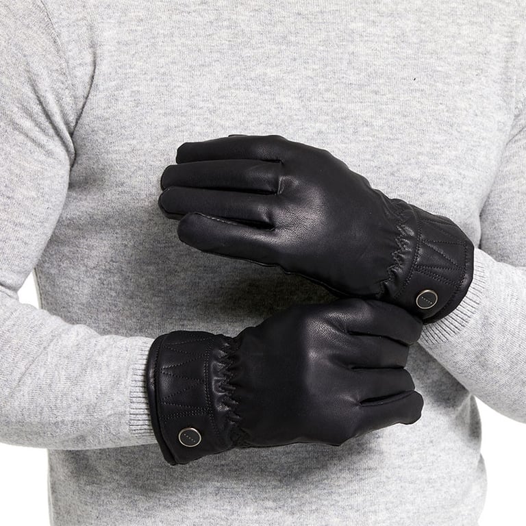 Guanti invernali da uomo dall'aspetto in pelle. Interno foderato in pelliccia